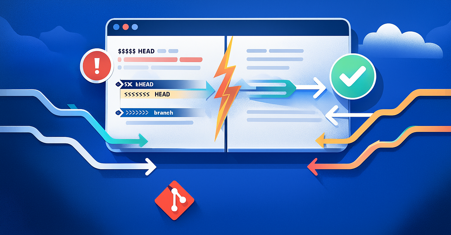 <<<<<<<,=======,>>>>>>> - ✅ Resolution: Edit file → Remove markers → Stage → Commit